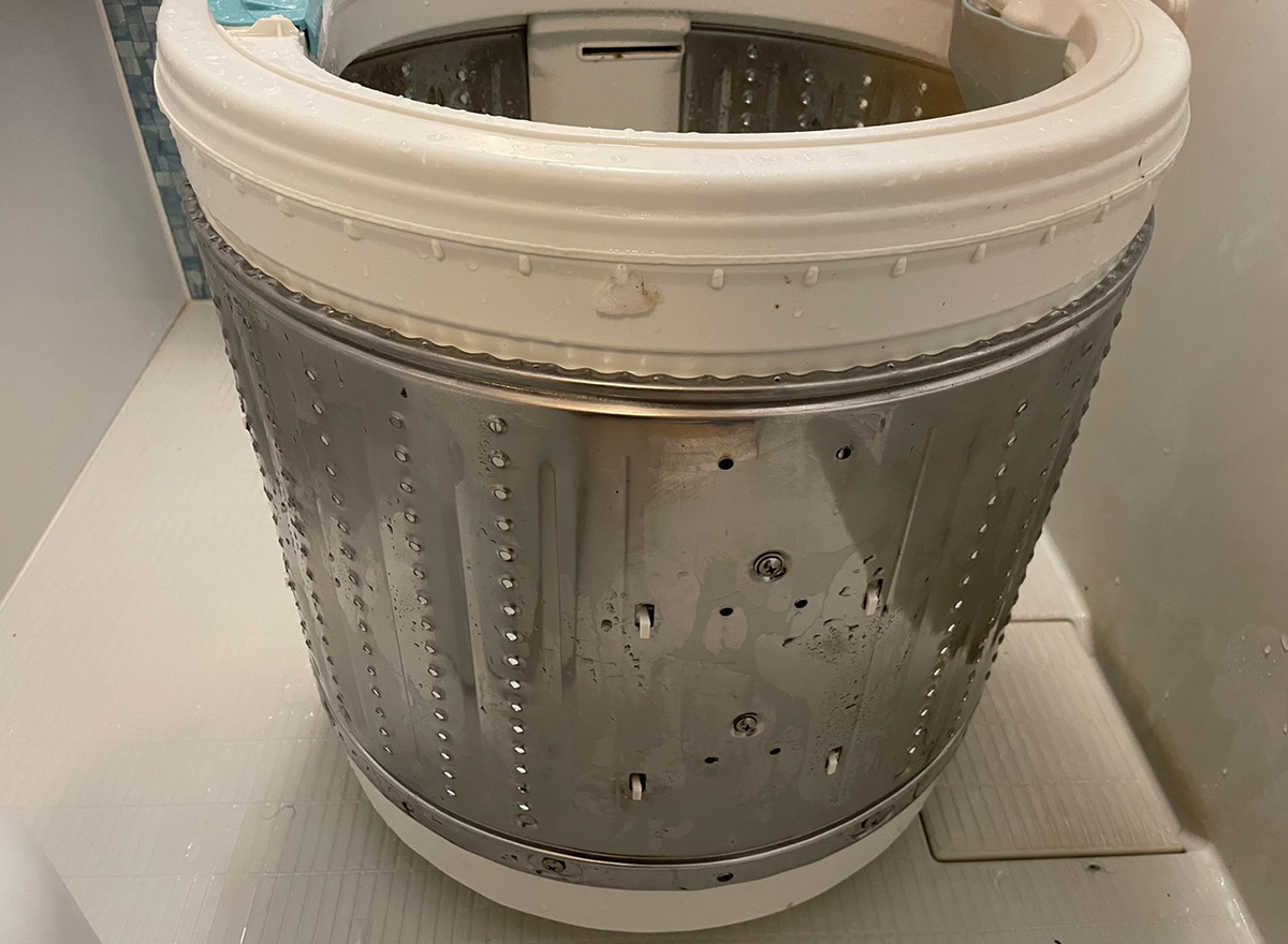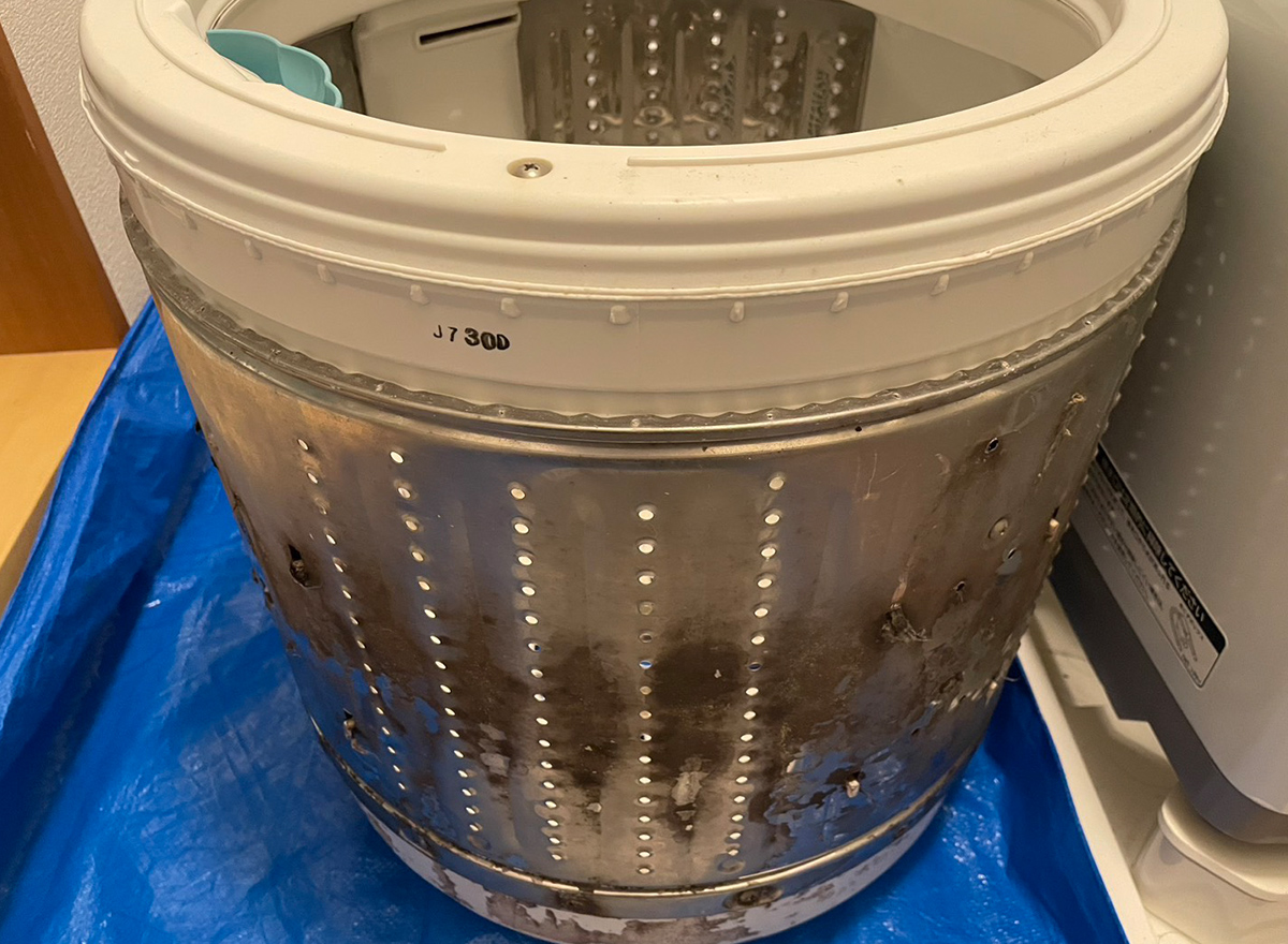 洗濯槽の裏側にはカビや雑菌、洗剤カスが蓄積しやすく、衣類への付着やニオイの原因になります。定期的な分解洗浄で、清潔な洗濯環境を保ちましょう。